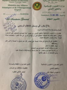 أصدرت السلطات الموريتانية اليوم تعليمات جديدة بخصوص صلاة الجمعة غدا