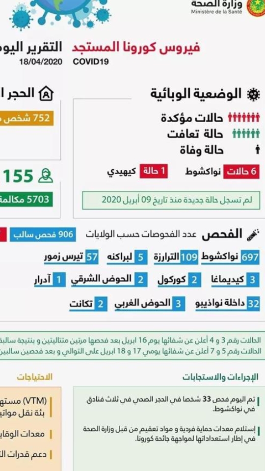 النشرة اليومية التي تصدرها وزارة الصحة حول وباء كوفيد 19 المستجد ليوم 18 أبريل 2020: