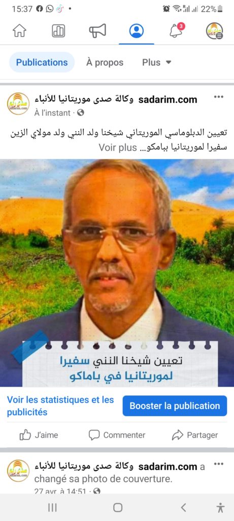 علمنا في وكالة صدى موريتانيا للأنباء أن الرئيس الموريتاني محمد ولد الغزواني عين اليوم الثلاثاء الدبلوماسي شيخنا ولد النني سفيرا لموريتانيا في العاصمة المالية باماكو، خلفا للسفير أحمدو ولد أحمدو.