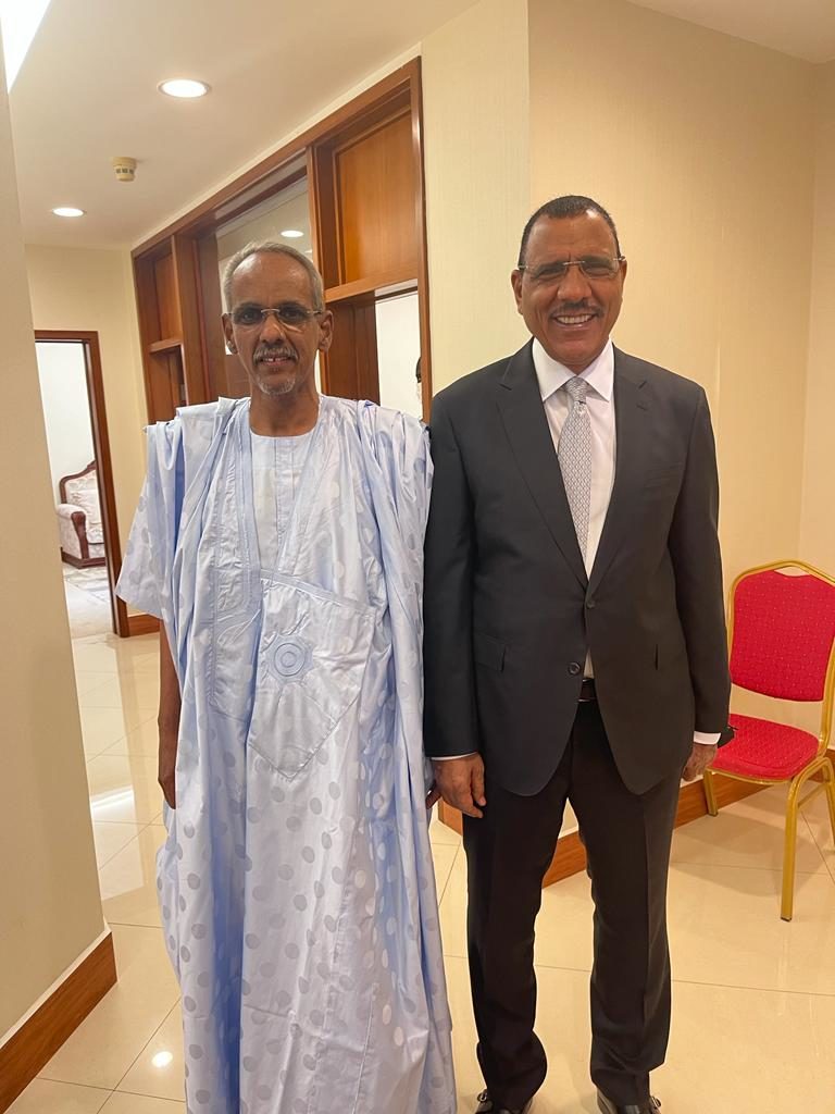 أجرى سعادة السفير شيخنا ولد النني فجر اليوم مباحثات مع الرئيس النجيري بازوم، تمحورت حول القضايا التي تهم القارة الإفريقية ودول الساحل خاصة.
