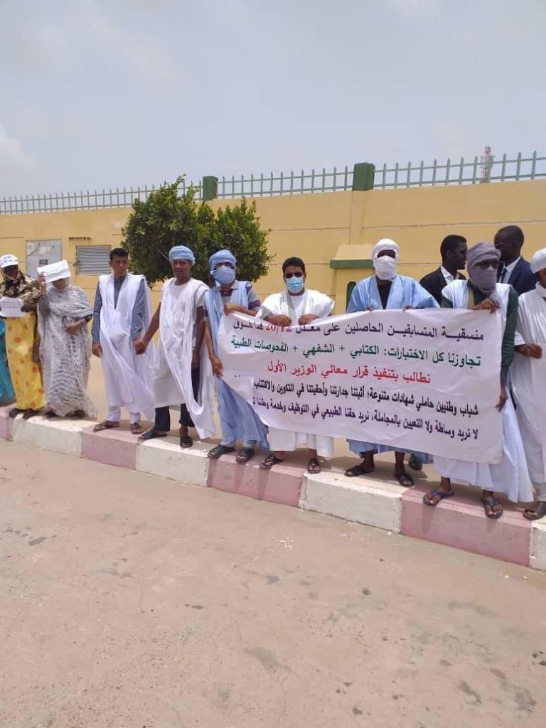 وكانت منسقية المتسابقين الحاصلين على معدل12+ قد نظمت عدة احتجاجات مطالبين بتنفيذ تعهدات صادرة عن الوزير الأول السابق ولد سيديا في عرضه لبرنامج حكومته أمام البرلمان، تلك التعهدات المتضمنة لدمجهم في قائمة الناجحين في مسابقة المدرسة الوطنية للإدارة التي نظمت مؤخرا.